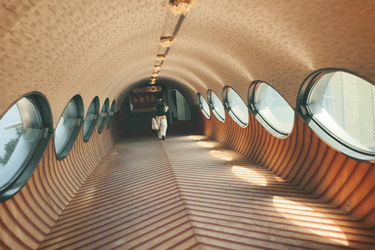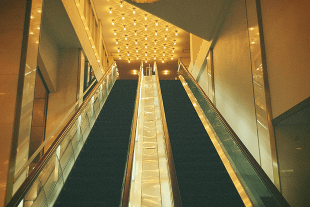 長いエスカレーターを登って…