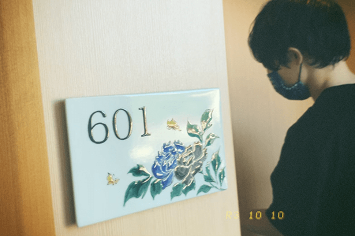 ▲部屋のナンバープレートは部屋ごとに絵柄が違って、伝統工芸の九谷焼というらしい。一期一会感がまた良い。