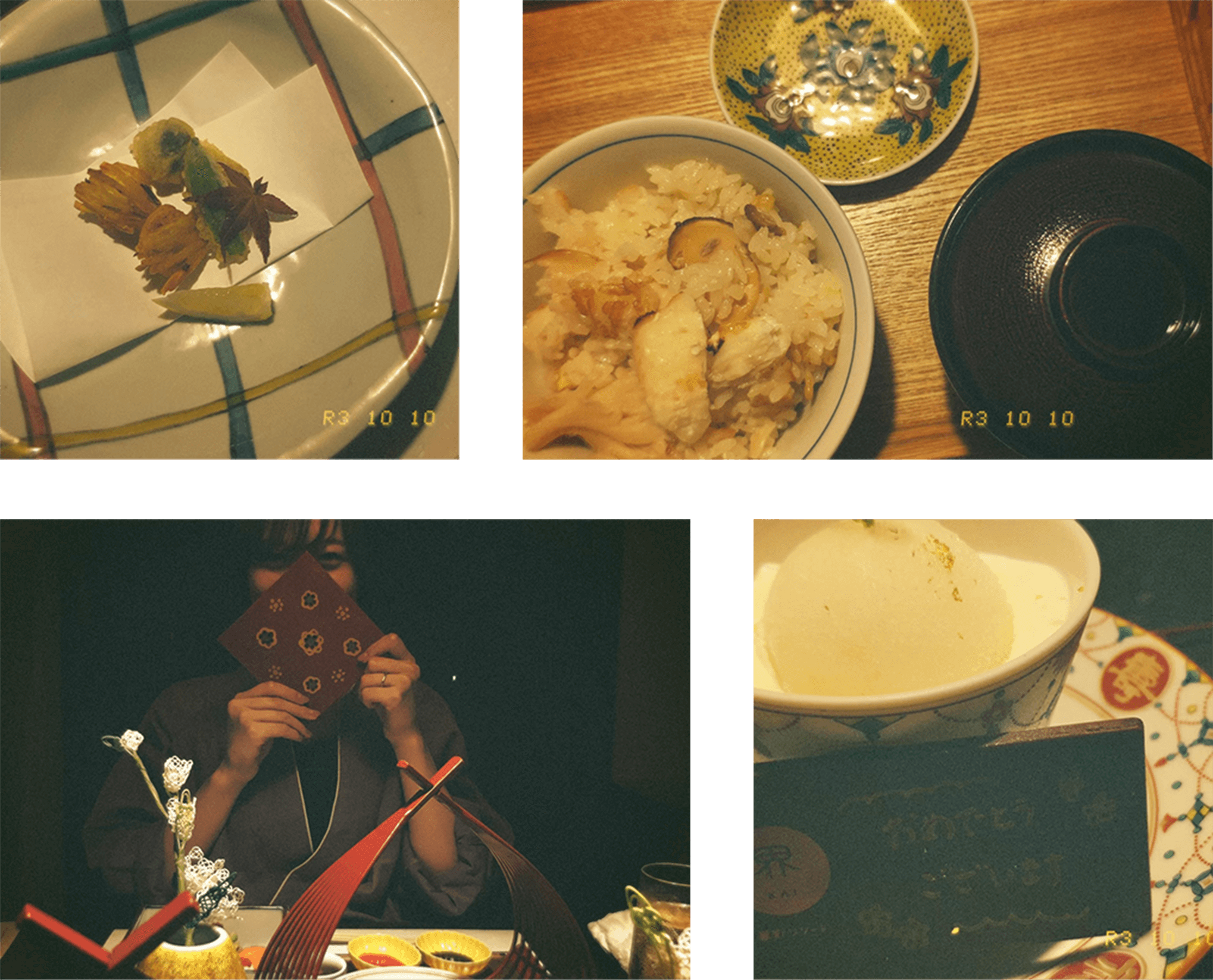 コースの料理は1品ずつ丁寧な説明があって、本当に丁度いい量でした。運ばれてくる料理たちはそれぞれ九谷焼の着物がすごくよく似合っていて美しかった…。料理と器はとってもおいしい関係なんだと知りました。